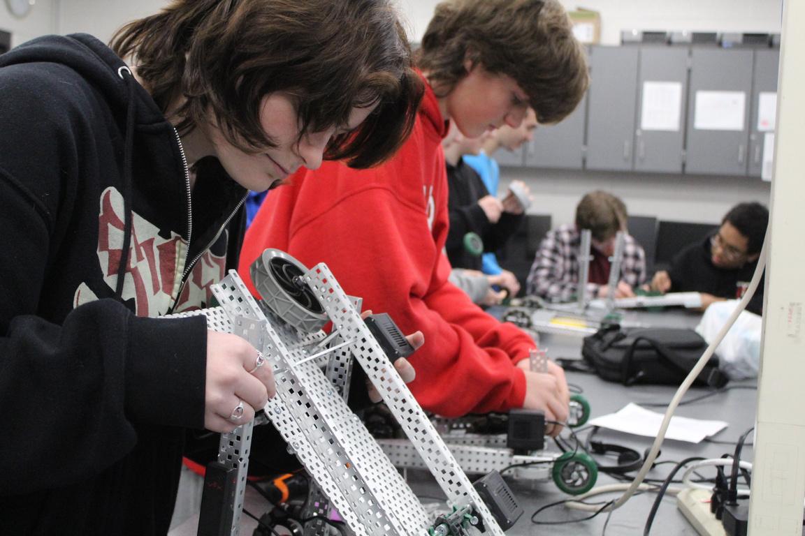 The NHS Robotics club uses VEX V5 robotics components to participate in regional competitions Through teamwork, club members engineer custom robots, configure human-interface controls, and program automated behaviors The Robotics Club aims to create a welcoming community open to all students No previous experience is necessary Robotics Club operates under the aegis of the NHS chapter of the Technology Students Association (TSA).