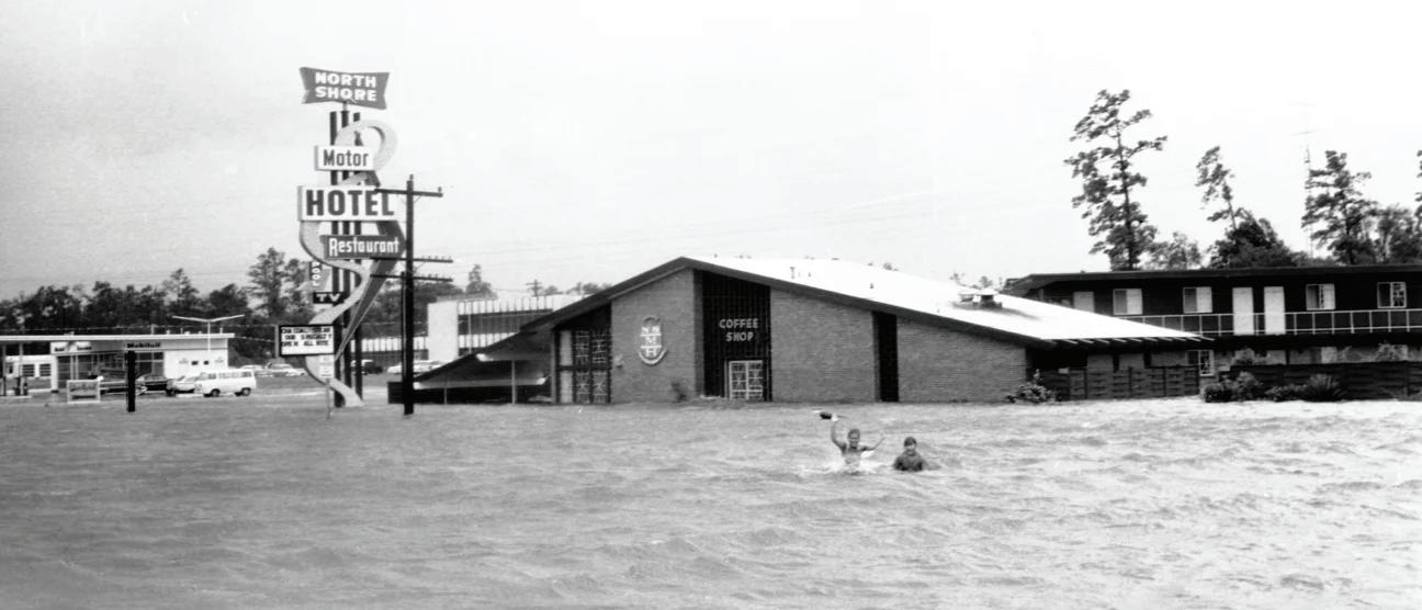 Flooding in North Shore caused by Hurricane Carla, 1961. Photo coutesy of Houston Public Library.