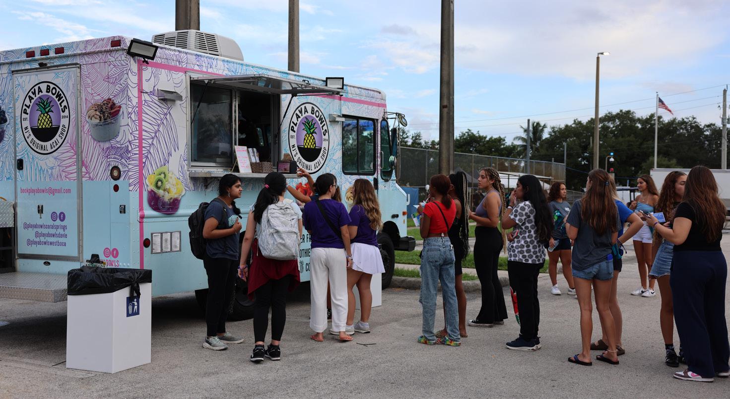 opening ceremony, with students lined up to order by 11:30 a.m. Shark Dining gave out raffle prizes, such as a Chick-fil-A towel.
