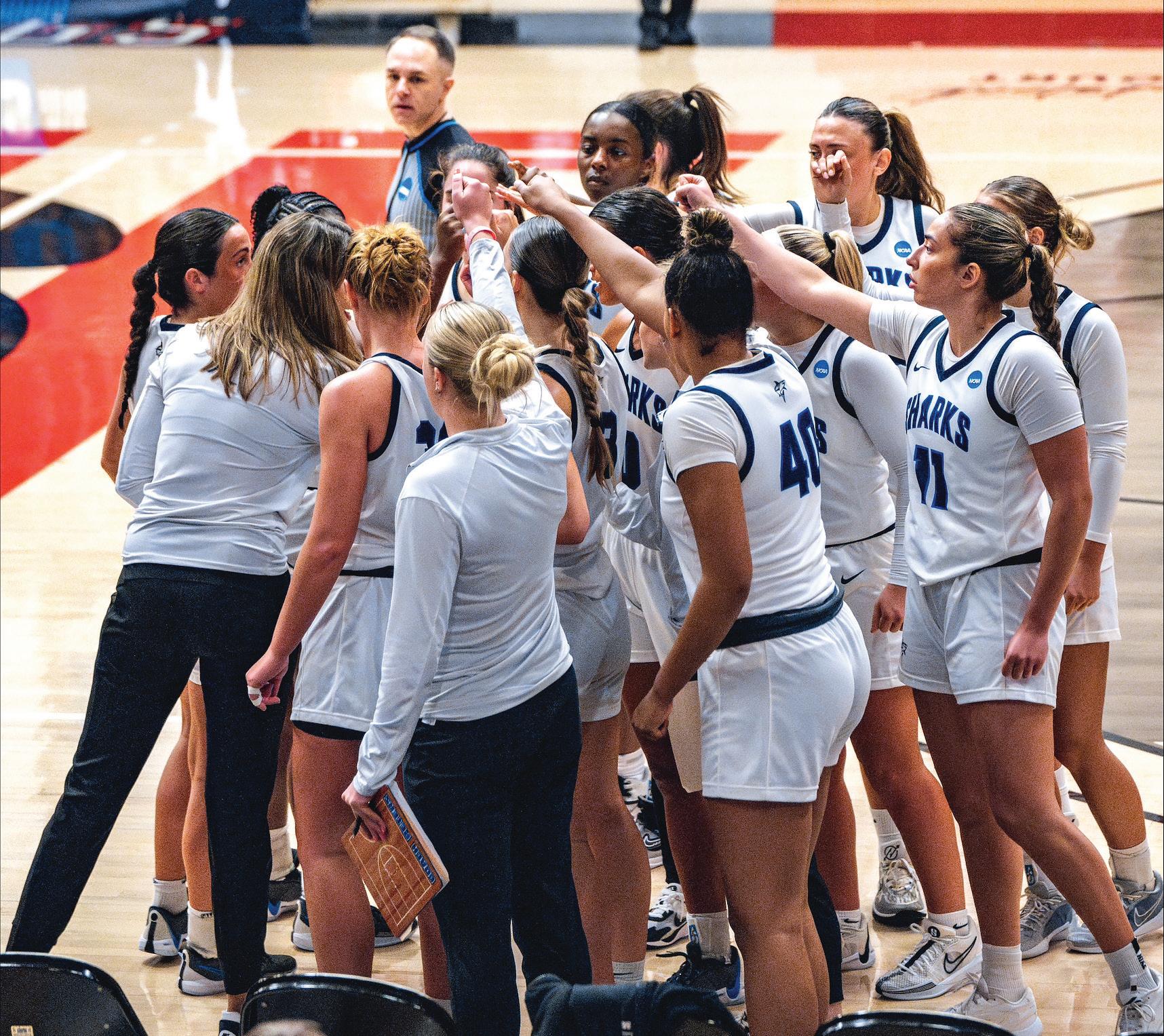 The No. 24 women’s basketball team fell 65-60 in the NCAA South Region Championship game against No. 9 Union (TN). The Sharks were led by Jess Moors, who had 10 points, and Madison Cloonan, who had nine points.