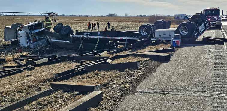 On Feb. 25 at approximately 3:18 p.m., the Merrick County Sheriff’s Office was detailed to a two-vehicle injury accident at Highway 30 and 26th Road in rural Merrick County. A preliminary investigation revealed that a 2019 Peterbilt semi-truck/ trailer was traveling eastbound on Highway 30 and collided with a 2014 Chrysler Town & Country minivan that was attempting to turn north on 26th Road. The minivan was pushed to the south side of Highway 30 and the semi-truck traveled into the north ditch, rolled onto its side and ended up in the south ditch of Highway 30. The driver and sole occupant of the 2019 Peterbilt semi was identified as John Woodyard (54) of Gage County. The driver of the 2014 Chrysler Town & Country was identified as Manuel Garcia (22) of Douglas County. There were five passengers in the 2014 Chrysler Town & Country. No injuries were reported by any of the drivers or passengers.