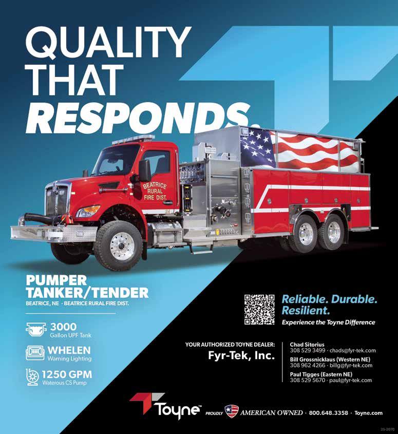 This month’s article is dedicated to the memory of Jerry Stolze, South Sioux Volunteer Fire Department.