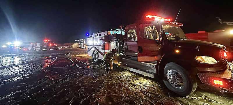 The Madison Fire Department was one of eight agencies that responded to a fire early Monday morning at a hog confinement facility owned by Pillen Family Farms near Humphrey.