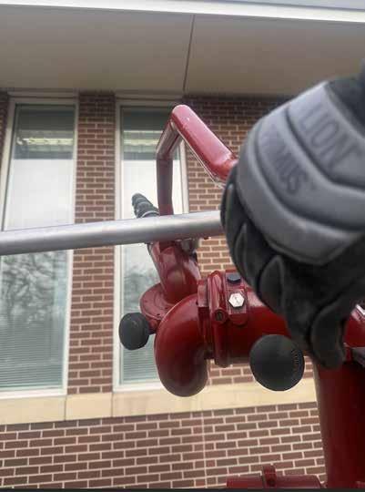 a very chaotic incident when seconds may count. Are your jack pads ready to be deployed, or are they rusted together because of the road salt and winter debris, or they haven’t been deployed in over a year? Are your safety harnesses where they need to be and ready for use, or if you have turnout gear with an integrated ladder belt, do you have the tether and carabiner on your gear ready for you to hook up? Truck and equipment checks are a vital part of our readiness and need to be actually done. It never fails when someone pencil whips a checklist, we end up finding out that we’re missing something critical. Make sure you know how your truck needs it’s water supplied. In Iowa, most of the aerial apparatus you will find are going to be Quints. While this is not a bad thing, it does require some knowledge about how your apparatus will perform. When you are using the pump on your aerial, the engine RPMs are going to be dedicated to the water supply function, which will eliminate “high-idle” movements of the aerial device and cause them to be much slower. If you have the resources available, task an engine company to supply the aerial inlet on your aerial. This way, the Engine company can send as much water as you can handle, and you will still have high idle available to position your ladder or tower and adjust water flows or angles of attack. With engines and ladders on scene, hopefully the engines will allow the truck to position in front of the structure or “take the address” for ideal posi-