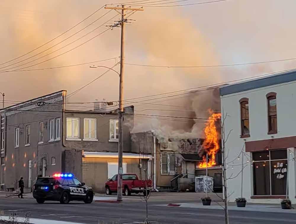 A fire gutted a downtown Beatrice building Saturday morning, Jan. 3, next to the Black Crow Restaurant. Beatrice Fire and Rescue responded to reports of a fire near South Fourth and Court streets at 8:04 a.m. A large amount of smoke was seen coming from the front of the building. When firefighters arrived, a large amount of smoke and fire was seen coming from the back of the building. Beatrice Police blocked off Court Street in the downtown area as a pumper truck, aerial truck and an ambulance responded to the scene, along with at least a dozen firefighters. The fire department said the fire was contained by 9:11 a.m. The main building sustained heavy fire and smoke damage. A connected building sustained heavy smoke damage, and another building sustained light smoke damage. No working smoke detectors were noted throughout the structures and structures were not occupied at the time of the fire. No injuries were reported due to the fire. According to the Beatrice Fire Department, the damage is estimated at or greater than $100,000.