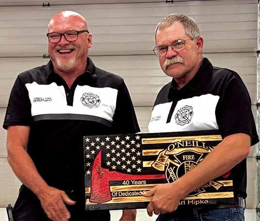 Ron Schmit of O’Neill was honored for 50 years of service. Schmit joined the department in 1975, rising through the ranks and becoming one of the department’s most effective chiefs. Through Schmit’s leadership, the department broke barriers, becoming a more modern department. Modern equipment, such as pumpers and tankers, was added by both the city and rural fire boards. Working with the City and Rural boards, he helped raise levies on the county side to ensure that funding would be in place for future departmental needs.