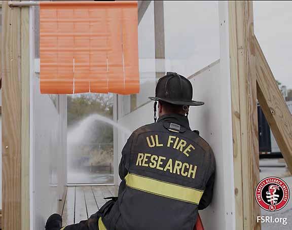 terior and exterior camera views, the YouTube video “Pushing Fire” by the Firefighter Safety Research Institute visually illustrates the implications of both fog and straight/ solid streams being applied from outside the structure.
