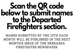 Email your Upcoming Event by the 10th of the previous month (ex. Aug. 10 for the September issue) to jeff@nebraskafirefighter.com . There is no charge.