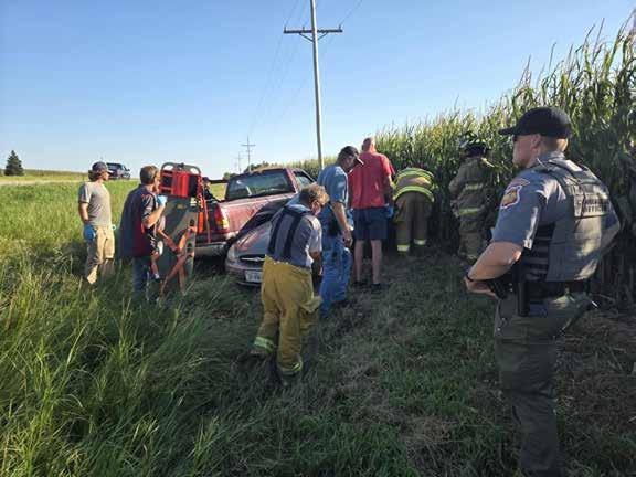 Hebron Volunteer Fire Department was called to a two-vehicle accident on August 13. The jaws of life were used to free two patients from the car. The driver of the pickup truck did not require transport or treatment. Both patients were taken to Thayer County hospital for treatment.