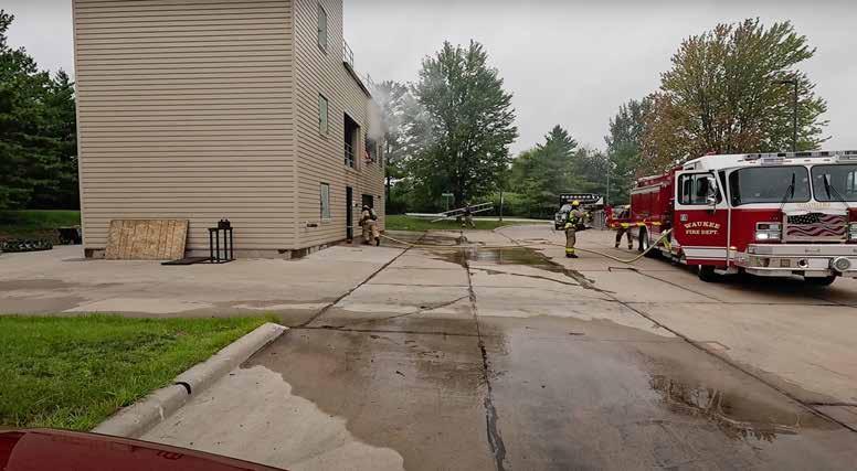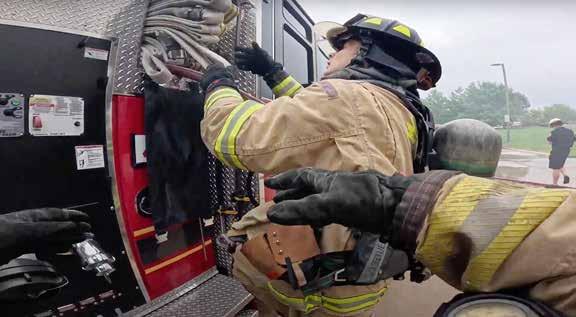 GoPros, for interior firefighting because of their heat resistance and durability, although I will say that I personally had luck using GoPros in both live fire and non-live-fire training environments. One other advantage of the action camera is that they are great for mounting in various spots, such as on an SCBA shoulder strap using a backpackstyle mount or on the side of a vehicle or training tower, using a magnetic mount. Even if you don’t own a purpose-built action camera, a simple smartphone placed in a location that captures the entire drill can be effective. Some thermal imaging cameras (TICs) also allow for video recording, which can be especially valuable in low-visibility environments, whether using real or artificial smoke. In the end, the best camera is the one that accurately captures the drill and fits the training environment—now let’s explore why it’s worth putting it to use.