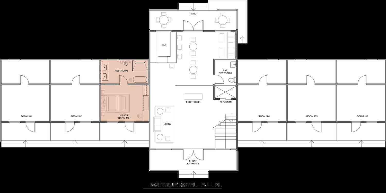 This student project involves the re-adaption of an existing building into a boutique hotel, located in the blooming artistic area of Mission District in San Francisco. The target clientele for this boutique hotel are young adults with a modern spirit and independent attitude. The unique appeal of this hotel’s concept is established by its focus on visual and performance arts. Students are each assigned one room and a different type of visual and performance art at random, and must translate their given theme into the room’s design. The Melior room is designed based on the elements of Indie Pop.