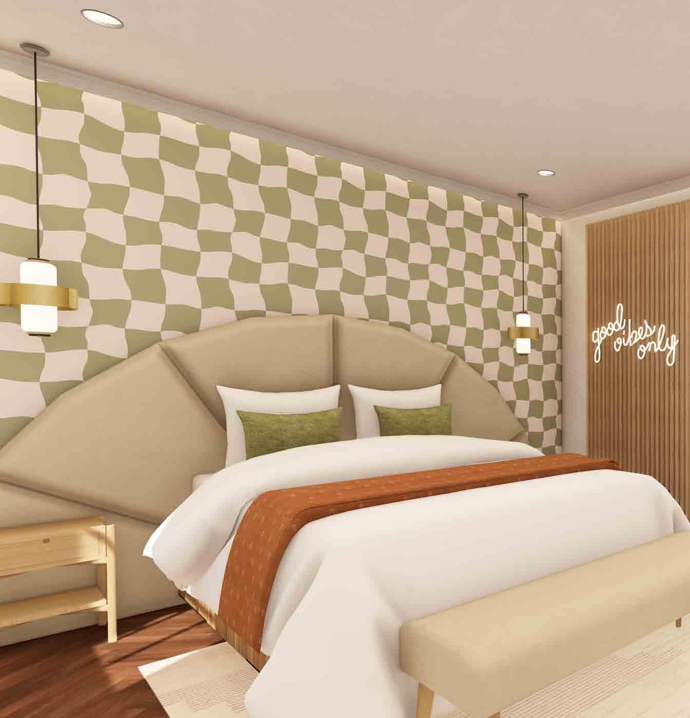 To envelope guests and visitors in Indie Pop’s unique simplicity, freespirited, and down-to-earth atmosphere, along with its funky yet cozy appeal with patterns and earth tones.