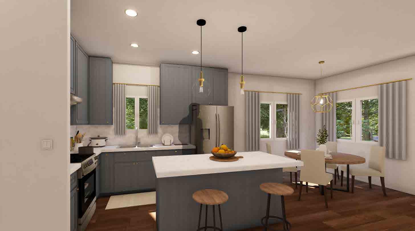Chico State Interior Architecture interns collaborated with the Rebuild Paradise Foundation to produce plans that would help the town of Paradise rebuild their community from the lasting damages of the 2018 Camp Fire. Students work under the supervision of Rouben Mohiuddin, a Chico State Interior Architecture professor and the principal designer of Design SI. With local engineers and contractors, their aim is to make “ready-to-build” packages that would lower the costs and shorten the lengthy construction process. The exteriors and interiors of this plan come as a blank slate. With a materials binder of colors and finishes, homeowners can make selections and customize their homes with ease.