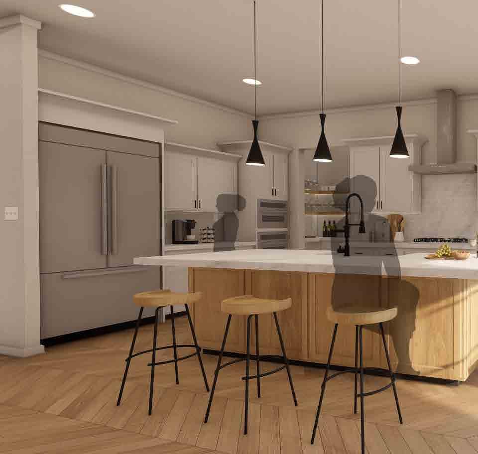 This project re-envisions a homeowner’s existing kitchen. As a host of many family and friend gatherings, the client hopes to renovate their kitchen space with an light and airy palette that also functions efficiently alongside their funfilled evening activities. The client loves Modern Classic interiors and want their new kitchen design to carry a blend of sleek and simple lines with a natural furnishes. The space’s renovation takes advantage of the already existing architectural elements and primarily focuses on their kitchen island, as it is often the focal area for their gatherings.