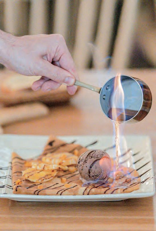 ↑可可火焰橙酒甜薄餅是店內招牌必點,主廚會到桌邊為顧 客服務。