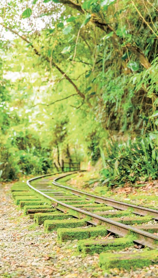 森林遊樂區,即是1960年代林業樣貌的 縮影,舊稱「木瓜山林場」,如今仍保 留開墾時的軌跡,循著鐵道漫步,彷彿