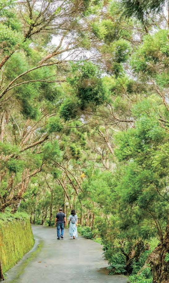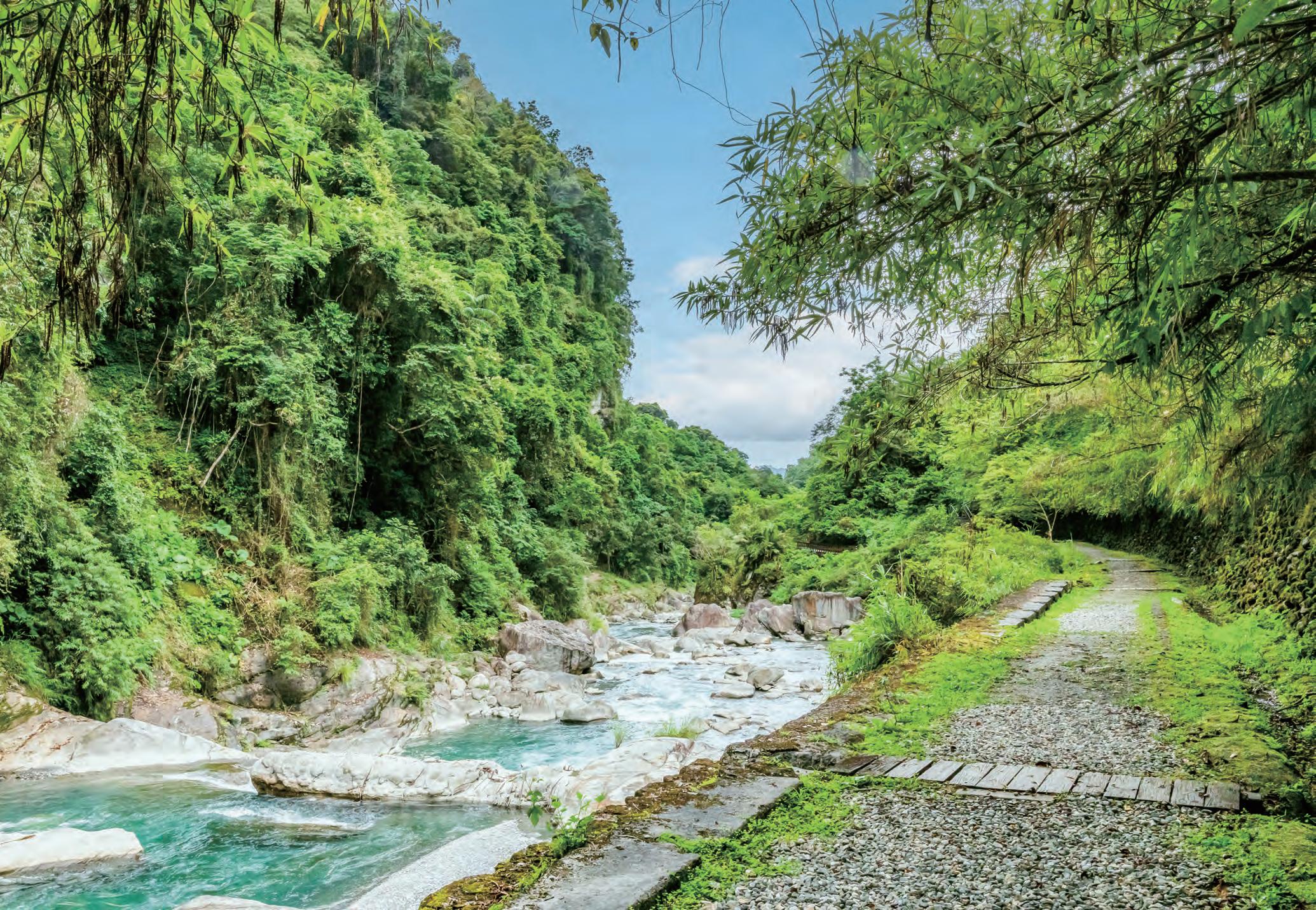 沿途景色秀麗、綠意盎然,茂密的樹蔭讓 人行走起來涼快愜意不少,有時還能遇見 臺灣獼猴在樹梢間玩耍。伴著蟲鳴鳥叫一