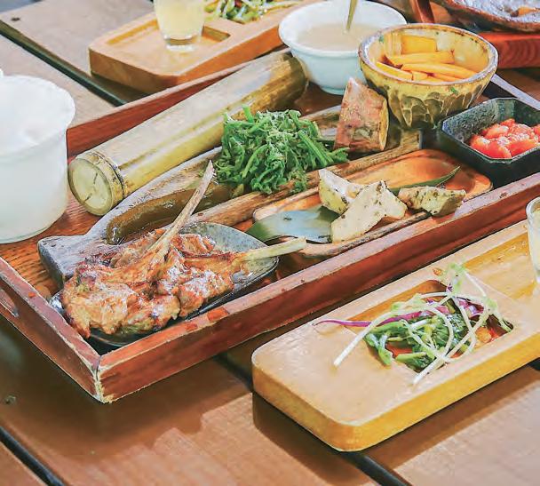 小米地瓜甜湯以及金針湯等餐點,其中最 吸引人目光的是散發微微焦香的羊小排,