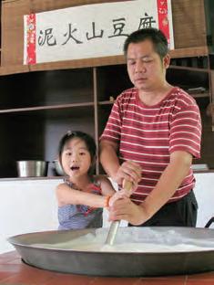 ←泥火山豆腐是羅山村 一大特色,遊客來訪 必體驗。(羅山大自 然體驗農家提供)