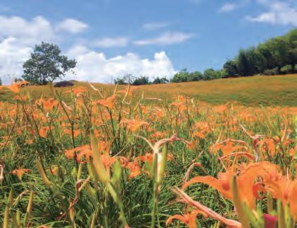 花季,別忘了在忘憂亭駐足片刻,細賞兩 側盡是美麗的金針花海,猶如一件件橙黃 富麗的花毯,景致相當迷人;此外,忘憂