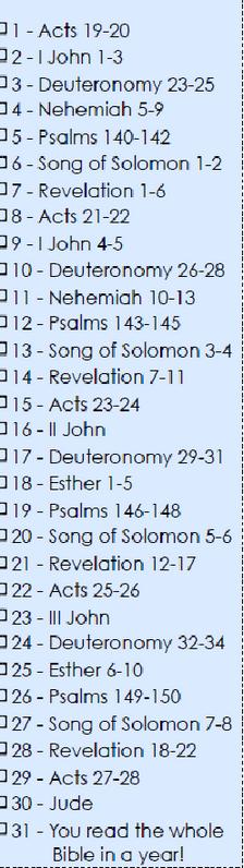 The reading plan from January to March will be featured in the next issue