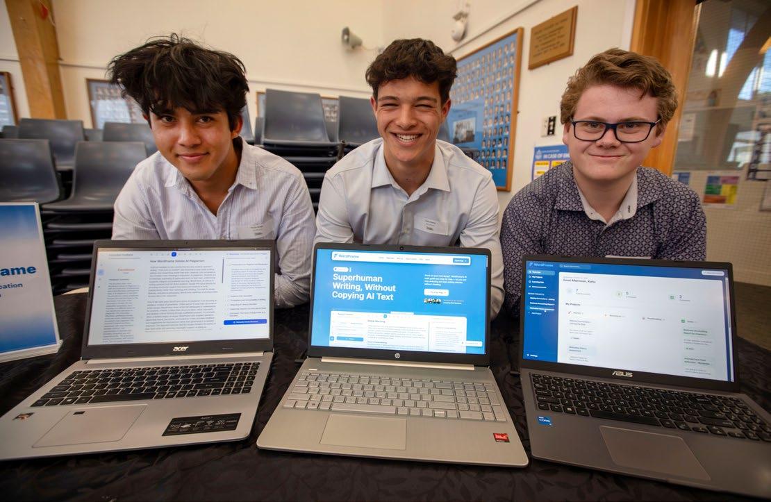 Marlborough Boys team WordFrame took out the CAANZ award for Best Annual Review. Sanjiv Singh, Lawrence Piesse, and Kahu Hoeta built an AI App that teaches you how to structure and improve your writing, helping students build skills using ethical AI that keeps your work excellent and plagiarismfree. Their mentor Brent Carpenter has been amazed by their knowledge and determination and how much the students have achieved.