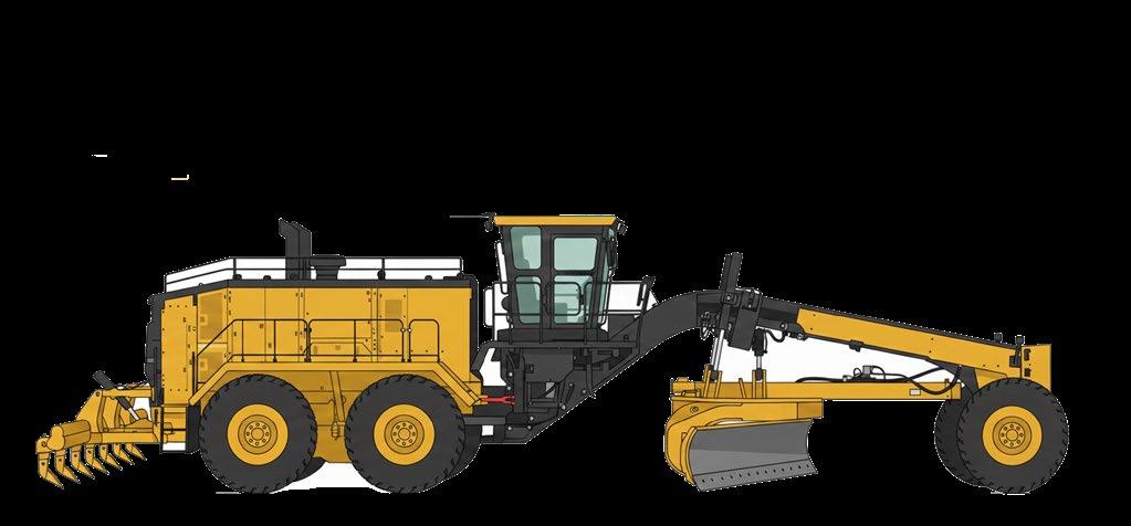 They feature a blade which can move to a wide range of positions, it is mounted onto a long wheelbase chassis, most commonly combined with a ‘cantilever’ tandem drive axle, this ‘averages out’ any imperfections in the existing ground and allows the grader to trim the surface to a precise and smooth finish.