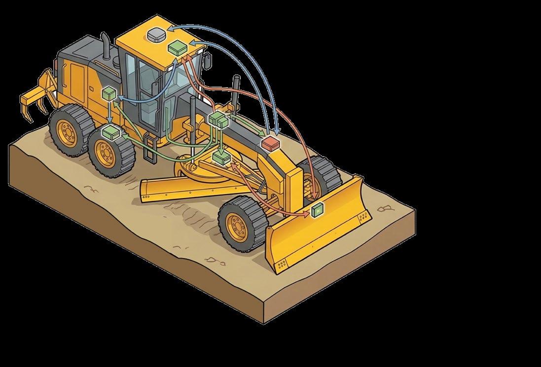 Global Positioning System (GPS), also known as Global Navigation Satellite Systems (GNSS) use an array of satellites to determine position and movement with high accuracy. These can be used to inform the machine operator or enable semi-automatic operations.