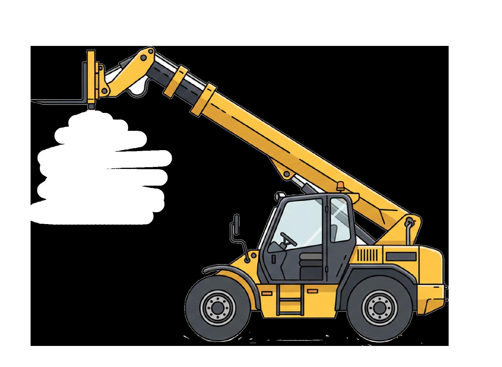 Telehandlers feature a telescoping boom arm mounted alongside an offset operator’s cab. The end of the arm is most-commonly fitted with forklift tynes however a wide range of accessories are available.