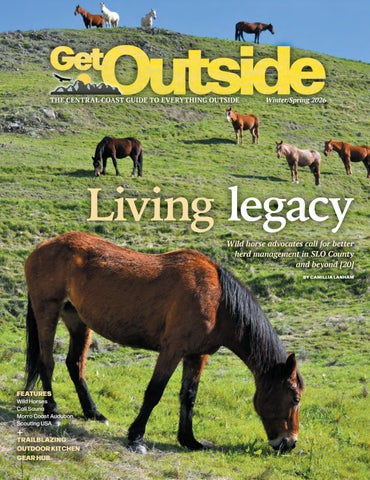 Managing federally protected species isn’t easy. Wild horses and burros are no exception. About 80,000 of them roam free on 26 million acres of public land in the American West, including a small herd of wild horses that call 13,000 acres of San Luis Obispo County home. Advocacy groups say that the Bureau of Land Management and the U.S. Forest Service can do better when it comes to the equines—for both the small herds and the large ones. That’s our main story in this winter/spring issue of Get Outside, but we’ve got other fun too. Read stories about trail-training canines, a brand-new regenerative farm, what the Audubon Society is doing for local students, Scouting on the Central Coast, and outdoor bathroom products for females.