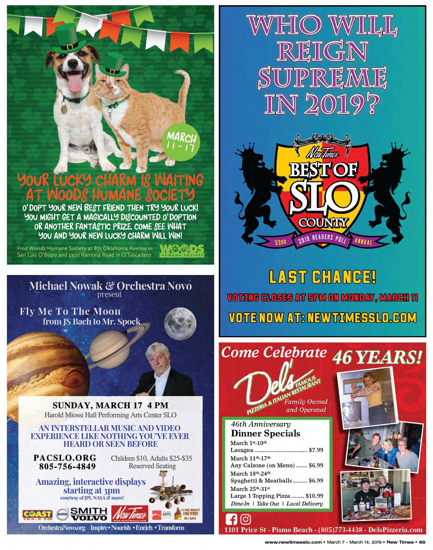Reports for this meeting will be available for review in the City Clerk’s Office and online at www.slocity. org on March 13, 2019. Please call the City Clerk’s Office at (805) 781-7100 for more information.