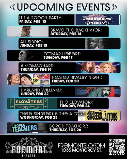 Tom Falconer, Dennis Flately, Edward Barnett, Bernadette Miller, Joe Brice New Times is published every Thursday for your enjoyment and distributed to more than 100,000 readers in San Luis Obispo County. New Times is available free of charge, limited to one copy per reader. The contents of New Times are copyrighted by New Times and may not be reproduced without specific written permission from the publishers. We welcome contributions and suggestions. Accompany any submissions with a self-addressed stamped envelope. We cannot assume responsibility for unsolicited submissions.