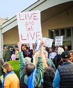 STUDENT RIGHTS Across San Luis Obispo County, school districts have faced pressure to clarify local policies regarding transgender student athletes. Those on all sides of the issue protested outside a Lucia Mar Unified School District board meeting last April.