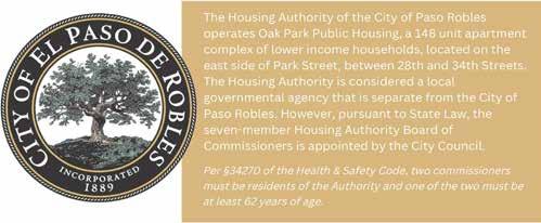 ALL INTERESTED PERSONS are invited to attend in-person and will be given an opportunity to speak in favor of, or opposition to, the above-proposed project. Written comments are also accepted by the City Clerk, prior to the hearing at 6500 Palma Ave., Atascadero, CA 93422 or cityclerk@ atascadero.org and will be distributed to the City Council. Written public comments must be received by 12:00 p.m. on the day of the meeting. Email comments must identify the Agenda Item Number in the subject line of the email. Written comments will not be read into the record.