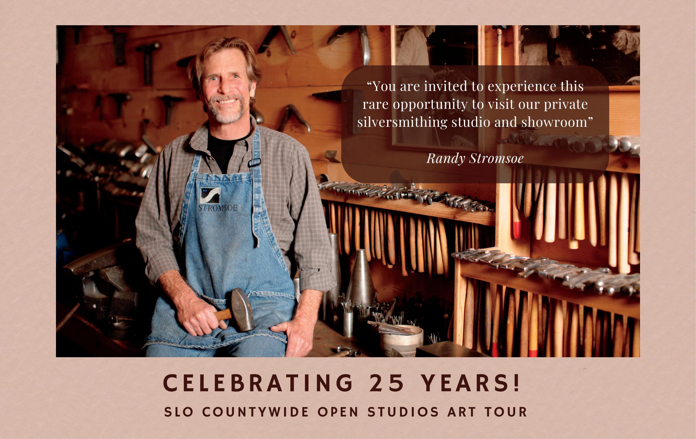 This year, SLO County Arts Council is thrilled to o er the 25th annual Open Studios Art Tour to San Luis Obispo County and beyond. For the past twenty-five years, we’ve proudly supported artists in the sharing of their talents and expertise with our extended community. Artists from a wide variety of disciplines will open their working studios to showcase their creative processes and creations. Across San Luis Obispo County, we’ll hear from artists of varied mediums, including glass works, woodcarving, jewelry design, sculpture, and painting.