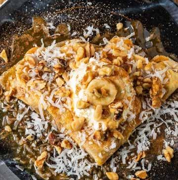 BLISSFUL BITES: The Coconut Bliss crepe at Let’s Crave It Crepes includes banana, coconut, walnuts, caramel syrup, cinnamon sugar, and whipped cream.