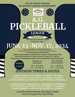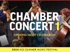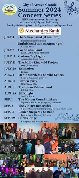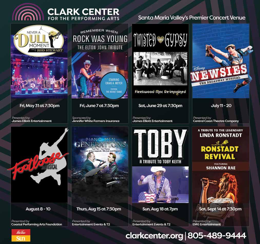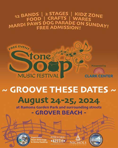 FOR ALL THINGS JUNETEENTH: juneteenthslo.com LIVE MUSICAL PERFORMANCES BY: The Vibe Setters Bay Love Blue Violin 7th Annual with NAACP SLO County • FREEDOM LOUNGE Hosted by History Center SLO County 696 Monterey St. SLO • Resource Fair • Silent Auction • Spoken Word • Soul Food Dinner (Buy Tix in advance: juneteenthslo.com) • Black Art Exhibit Hosted by Edna Contemporary Fine Art 967 Osos St, SLO FIRST UNITED METHODIST CHURCH 925 NORTH F STREET • LOMPOC, CA GENERAL ADMISSION $25 STUDENTS WITH ID $5 CHILDREN 12 & UNDER FREE s LOMPOC ORCHESTRA For the Love of Music BRIAN ASHER ALHADEFF Artistic Director & Conductor Revisit popular musicals when the Lompoc Pops performs their splendid renditions of BROADWAY’S BEST! Visit us at www.LompocPopsOrchestra.com or call for info (805) 733-1796 SUNDAY H JUNE 23, 2024 H 4:00 PM TICKET OUTLETS: The Box Shop Lompoc Valley Florist Sunset Auto...or concert night, at the door Don’t forget to mark your calendars & check our website for next year’s concert dates: SEPTEMBER 29, 2024 • DECEMBER 1, 2024 • MARCH 23, 2025 • JUNE 22, 2025 www.santamariasun.com • May 23 - 30, 2024 • Sun • 39