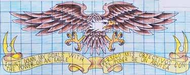 Others include a butterfly, an anchor, a rocket ship, and an eagle, the school’s mascot. Bustos is still sketching the last mural, which will incorporate the history of the Chumash people. The finished images range from 7 by 18 feet to 6 by 27 feet.