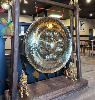 LITTLE DETAILS: The décor at Preaw Chamchoi’s Thai eatery comes straight from Thailand, like the wallpaper, gong, and statues. Chamchoi travels to the country annually and ships items back to California.
