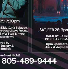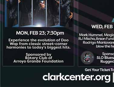 THE RHYTHMS OF JAZZ AND R&B This event is a fundraiser for the arts. To donate, go to the GoFundMe website and type in Bringing Jazz to SLO. A space has been found and we can now move forward in making this venue a success! Feb. 11 7:15-9:30 p.m. $50.05. my805tix.com. Region Event Center, 858 Monterey St, San Luis Obispo, (805) 225-3116. SLO SYMPHONY PRESENTS ROMANCE AND FIRE Immerse yourself in a night of sweeping romance and heroic grandeur with two titans of the Romantic era, Schumann’s Piano Concerto, and Sibelius Symphony No.2. Feb. 7 7:30 p.m. $12$92. (805) 543-3533. slosymphony.org/calendar-2025-2026. Performing Arts Center, 1 Grand Ave., San Luis Obispo. SOUL AT THE FROG AND PEACH WITH SUNNY AND THE WRIGHT TONES The Frog and Peach will host Sunny and The Wright Tones, with Toan Chau, David Keif, Daryl Vandruff, and Sunny Wright. Feb. 7 9:30 p.m.-12:30 a.m. Free. (805) 595-3764. Frog and Peach Pub, 728 Higuera St., San Luis Obispo, frogandpeachpub.com.