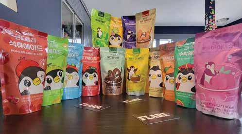 through Flare’s diverse beverage selection. A popular cocktail allows customers to make their own drink by combining soju, a Korean alcoholic beverage, with Korean-ade, a soft drink sold in a pouch—Flare has 15 flavors, including green grape, watermelon, and pomegranate.