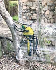 Son tres ilustraciones de más de un metro de extensión pintadas al aerosol sobre material plásti co transparente, donde aparecen zancudos de colores llamativos que hacen referencia al problema so cial que genera la proliferación de mosquitos alrededor del río y la contaminación del cauce.