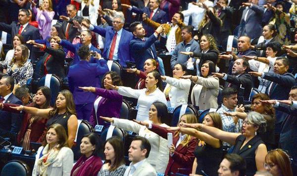“ ¡Sí, protesto!”, retumbó un ensordecedor coro de los 364 diputados de la llamada Cuarta Transformación en el Palacio Legislativo de San Lázaro, que al rendir su protesta de ley se comprometió a “cumplir y hacer cumplir la Constitución”.