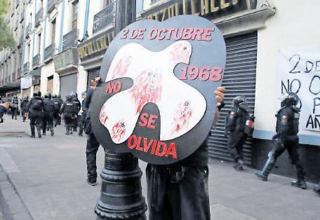 torturadores y asesinos de Tlatelolco y Ayotzinapa. Salimos a las calles porque la justicia la hacen los pueblos y la memoria es nuestra arma. Estamos aquí para recordar que la memoria se construye y se mantiene abajo”, se expresó durante la protesta.