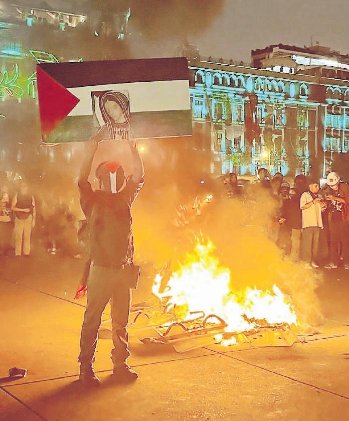 cristales y arrojaba objetos explosivos al Centro Cultural Universitario Tlatelolco, acto que la UNAM condenó al tratarse de un ataque a la cultura y la memoria.