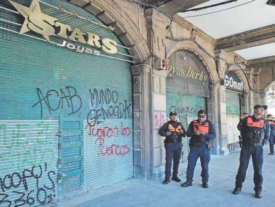 ● CANACO. Comerciantes del Centro Histórico de la Ciudad de México condenaron ayer los actos de vandalismo durante la marcha por el 2 de octubre, tras los daños a negocios y agresiones a policías atribuidos a grupos identificados como bloque negro, estimando pérdidas por casi 55 mdp. OVACIONES