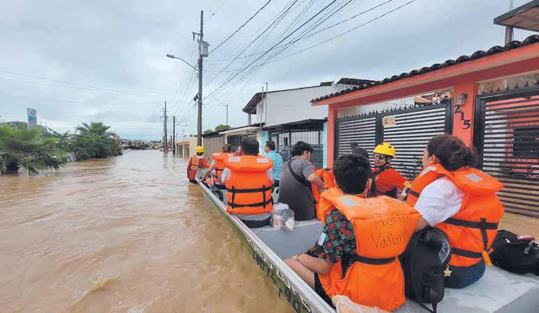 Para auxiliar a la población que se quedó atrapada en su domicilio y llevarla a albergues, las autoridades de Protección Civil utilizaron lanchas. Por el nivel de afectación se desplegó al Ejército mexicano, cuyos elementos auxiliaron ayer en la delegación de Ixtapa y la colonia Mojoneras, mientras que bomberos de Puerto Vallarta y personal de Protección Civil estatal realizaron labores de limpieza, apoyo y mitigación de riesgos en las zonas afectadas. Hasta ayer se habían desplegado 140 elementos de corporaciones