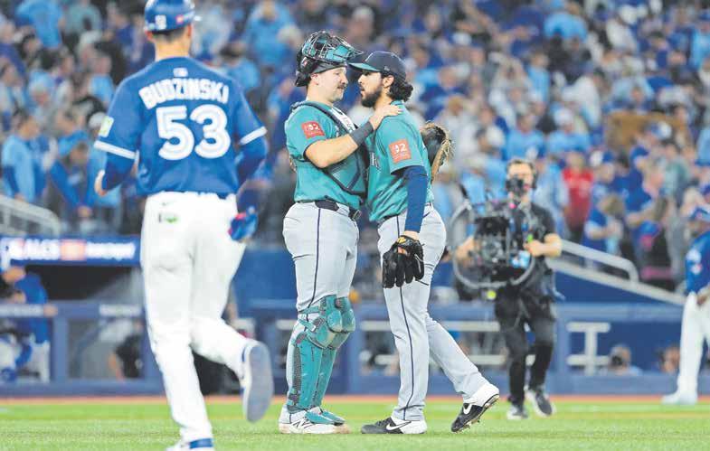 ● VICTORIA. Andrés Muñoz consiguió su segundo salvamento de la postemporada en el triunfo de Seattle Mariners sobre Toronto Blue Jays en el juego inaugural de la Serie de Campeonato de la Liga Americana. OVACIONES