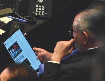 Se pone al día. Adán Augusto López fue captado viendo un periódico deportivo mientras se llevaba a cabo la sesión en la que se abordó el tema de las lluvias.