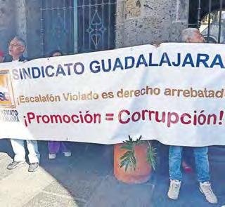 ● PROTESTA. Integrantes del Sindicato Guadalajara de Servicios Públicos y de la Asociación de Jubilados y Pensionados del Estado de Jalisco 20 de Septiembre AC, se manifestaron ayer frente al Ayuntamiento de Guadalajara para exigir el cumplimiento de los procesos de escalafón y derecho de preferencia, los cuales, afirmaron, han sido ignorados durante la actual administración municipal. Ambas organizaciones solicitaron la instalación de una mesa de trabajo con el gobierno de Guadalajara para negociar sus necesidades. Nancy Ángel ZMG 3A